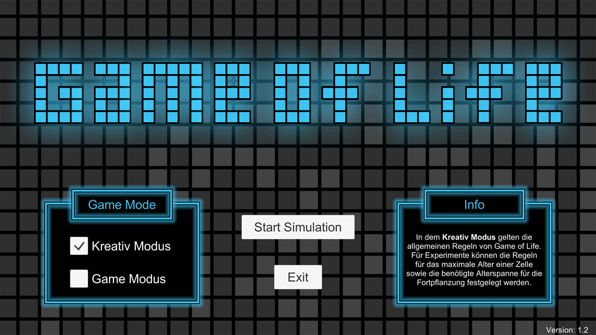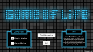 Der etwas andere Clon von dem Spiel Game of Life, das von dem Mathematiker John Horton Conway 1970 entworfen wurde. Anders als beim Original gibt es bei meinem Clon aber zwei verschiedene Spielmodi. Den Kreativ- sowie den Gamemodus.
