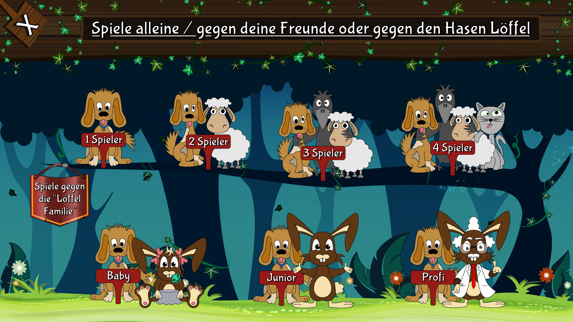 Für gemeinsames Spielen gibt es die Möglichkeit bis zu 4 Spieler an einem Gerät gegeneinander zu spielen. Möchte man lieber alleine spielen, kann man auch gegen Herrn Löffel (KI Gegner) spielen. Für die Langzeit Motivation sorgt das Freispielen von sogenannten Avataren. Diese können beim Spielstart ausgewählt werden und zeigen an mit welcher Figur man gerne antreten möchte. Sollte es mal zu einfach werden gibt es verschieden Schwierigkeitsstufen.