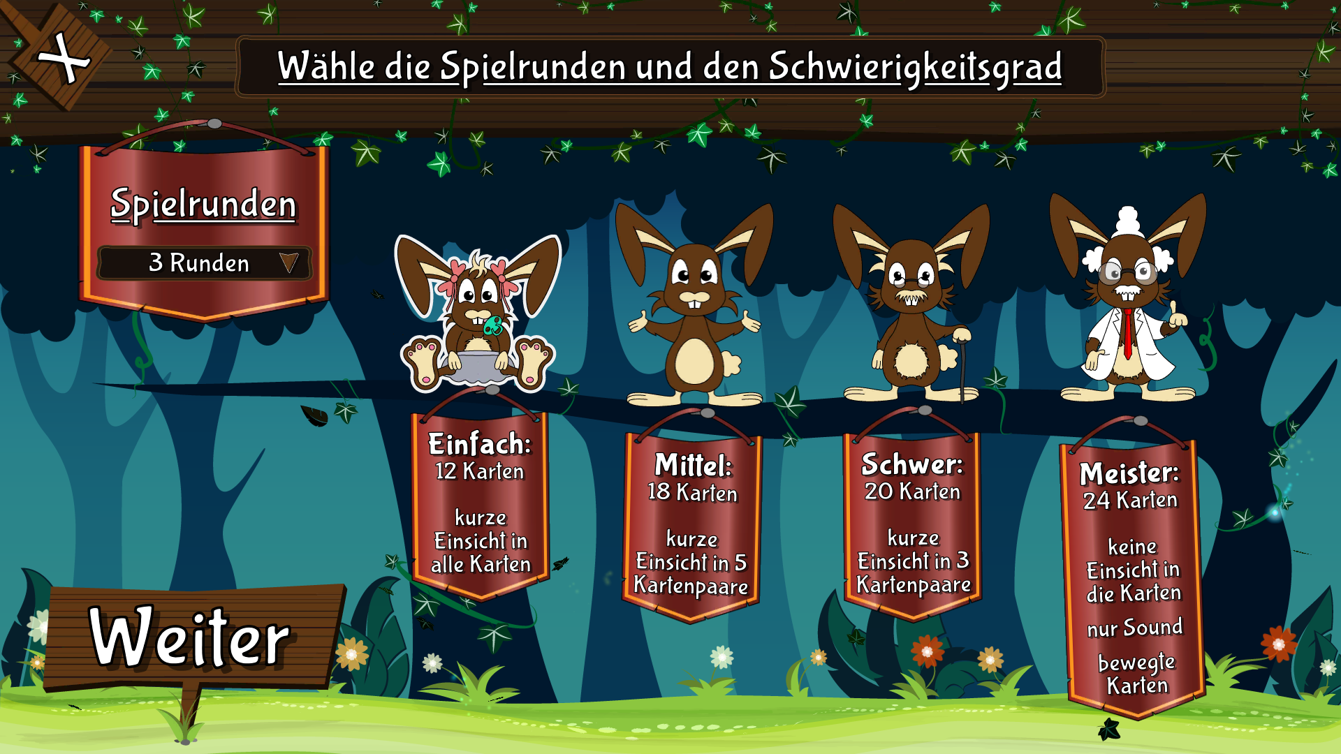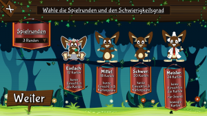 Vier verschiedene Schwierigkeitsgrade mit einstellbaren Rundenzahlen