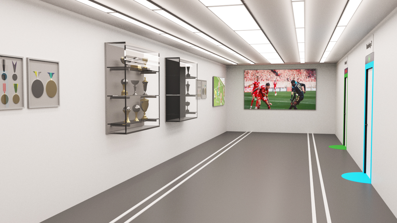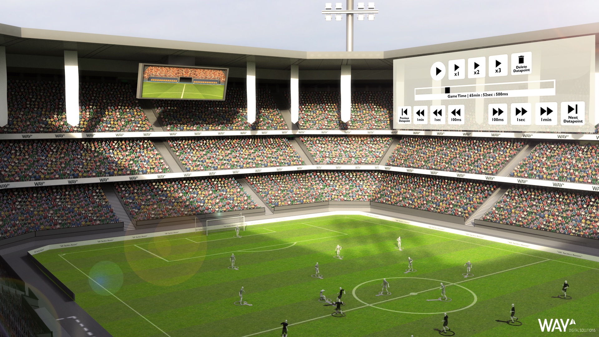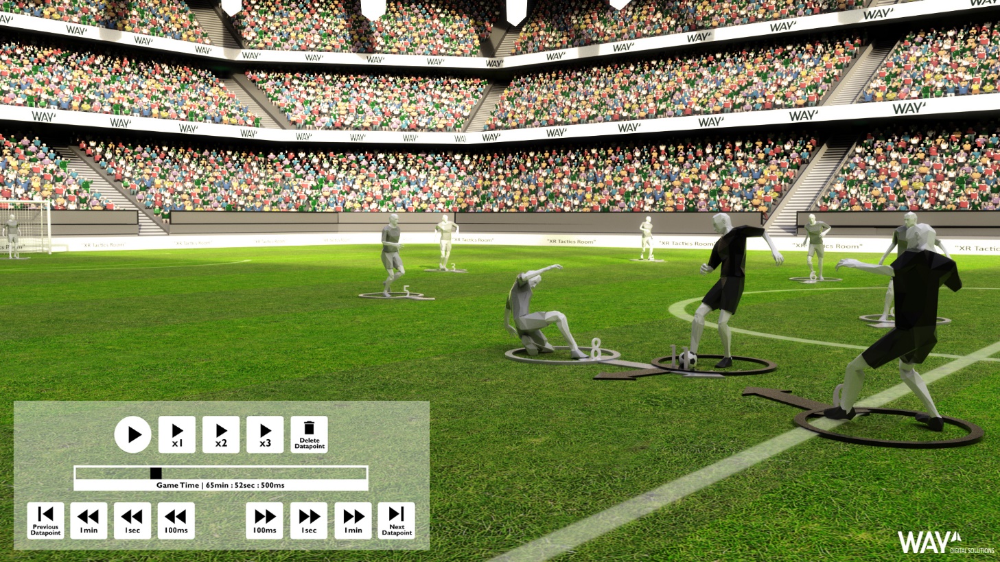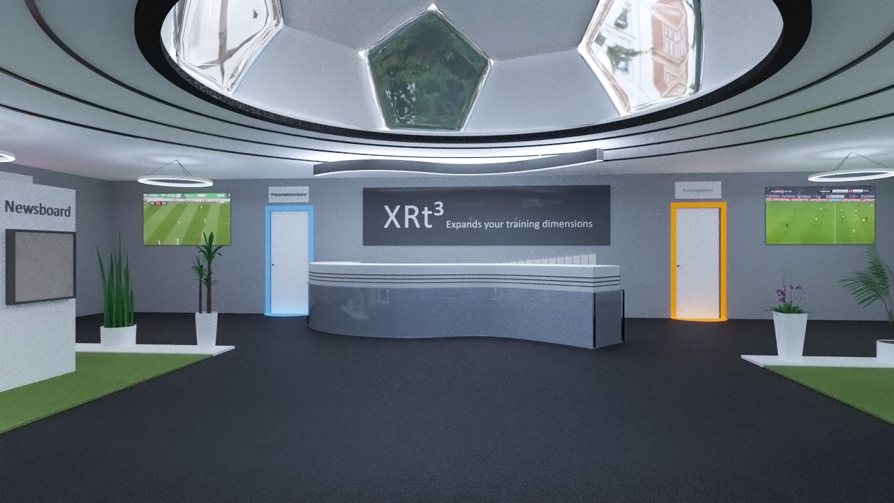 Die Anwendung basiert auf Tracking- und Eventdaten der Bundesliga und ermöglicht realitätsnahe Taktikbesprechungen im digitalen Zwilling echter Spielsituationen. Nutzer bewegen sich gemeinsam durch eine virtuelle Umgebung mit Stadion, Seminarräumen und Trainingsplätzen.